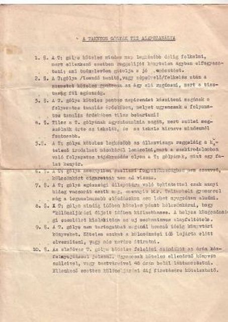 Másnap a képző dísztermében volt az írásbeli. Olyan érzésem volt, hogy talán tűrhetően sikerült. Néhány hét múlva a szóbeli is jól ment. Úgy emlékszem, hogy Jókait húztam, meg arról kellett beszélnem, hogy mi lenne az a tíz könyv, amit magammal vinnék egy szigetre. Ez a kérdés akkortájt a humán felvételi vizsgákon eléggé elterjedt volt és praktikus műveltségi tesztként is szolgált., ugyanis a válaszokból ki lehetett következtetni azt, hogy például mennyire van egyéni vonása a fiatalember érdeklődésének, avagy csupán meg akar felelni. Ugyanis a Bibliát mondjuk illett beírni, Marx Tőkéjét is, a többi nyolcban viszont már lehetett egyéni érdeklődési irányokkal hencegni, pláne, ha az ember argumentumokat is képes volt melléjük tenni. Aztán néhány hét múlva megjött az értesítés, hogy felvettek. Itt közbe szúrnám, hogy 1967-ben érettségiztem, utána pedig felszolgáló/pincér/ tanuló voltam a pécsi Nádor Szállodában. Ezt nem lett volna szabad megszakítani, de egy kitalált családi problémára hivatkozva azt mondtam az ottani, eléggé kellemetlen főnökeimnek – tőlük lehet, hogy én kaptam az utolsó inasnak kijáró pofont- , szóval azt mondtam nekik, hogy Székesfehérvárra költözünk. Felajánlották, hogy segítenek, de természetesen udvariasan azt feleltem, hogy valahogy majd elboldogulok magam is. Az ottaniakkal szemben azért voltam távolságtartó, mert a szememben ők testesítették meg a szervilis,korrupt, golyhó vidéki Magyarországot. Akkor élenjáró kommunisták voltak, később pedig tömegesen beléptek az új pártokba. 56-ban édesapám tagja volt a vasúti munkástanácsnak, vonatvezetőként nem vitt el egy uránvonatot, aztán lefokozták fékezővé. Évtizedekkel később az őt elitélők,konkrétan úgy 89 magasában, szépen MDF-esek lettek,meg liberók, meg kisgazdák. Értem én , csalni tudni kell,mondják az élet tekintet nélküli császárai,olykor csodálom meg irigylem is őket,de néha, ha van hozzá erőm, akkor kerülöm az utcájukat.